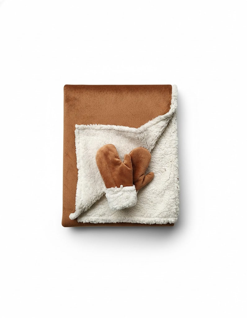 Set de manta y par de guantes de tela con forro de borrego, caliente y...