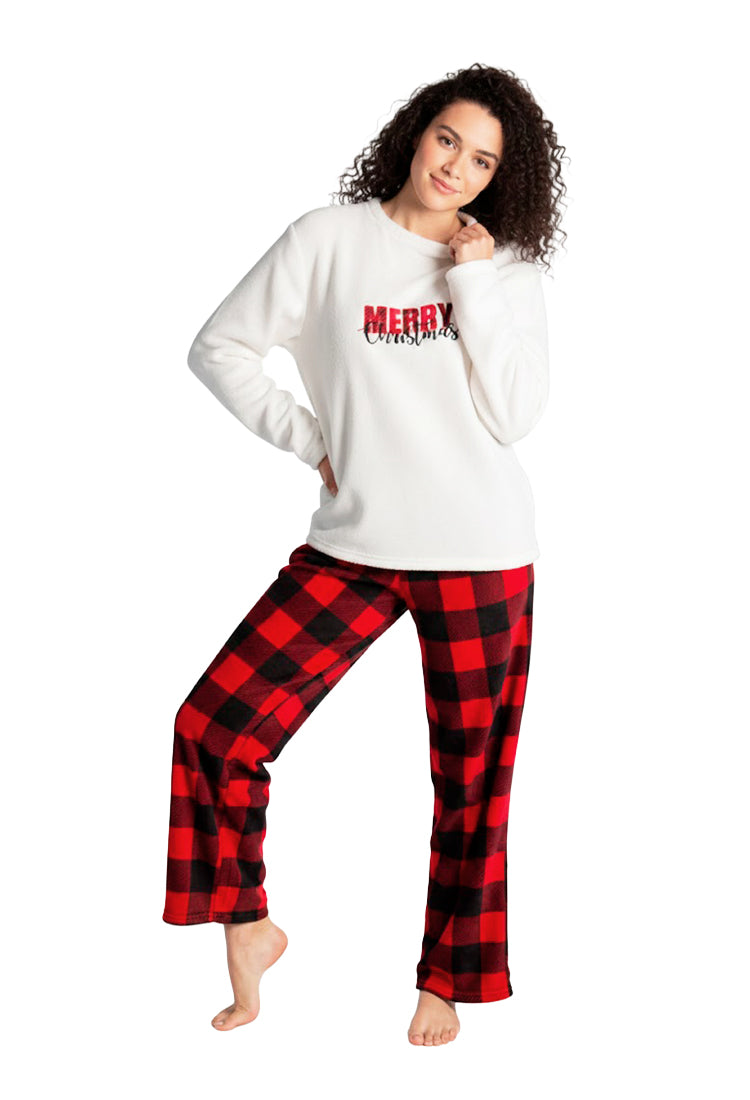 Juego de pijama, sudadera con frase Merry Christmas y pantalón de cuadros. Cuello redondo...