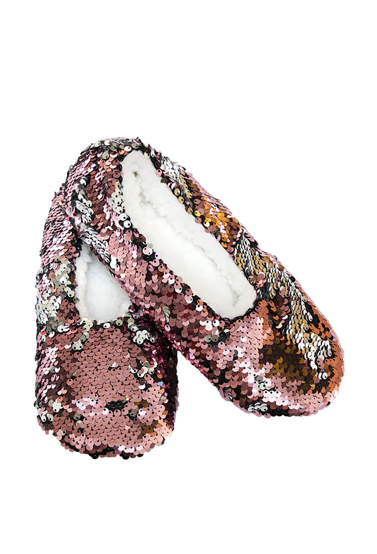 Pantuflas de cómoda tela con lentejuelas con tonos reversibles. Tela exterior y forro de fina...