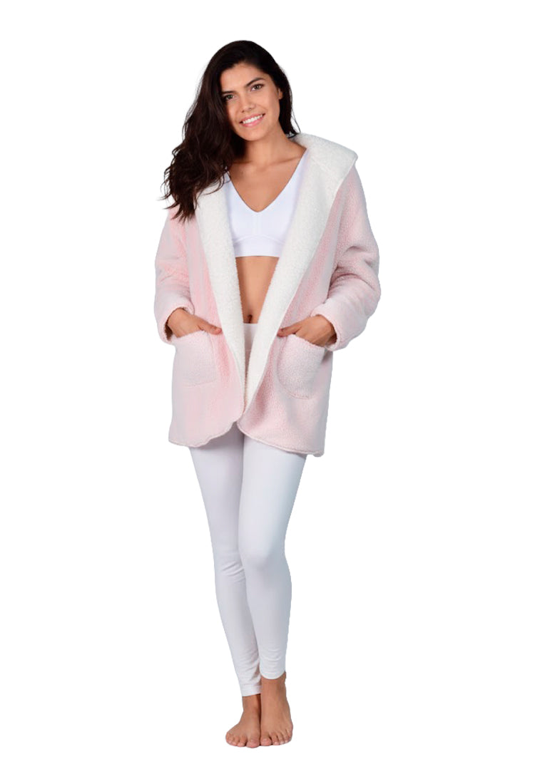 Bata chaqueta para dama confeccionada con suave y térmica tela sherpa. Esta bata lleva un...