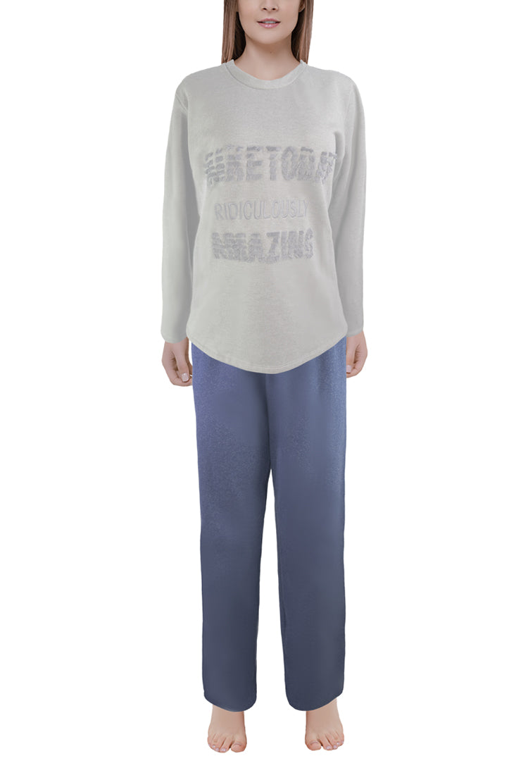 Ultra-soft pajama set, thermal sweatshirt and pants. Round neck that protects the chest from chills....