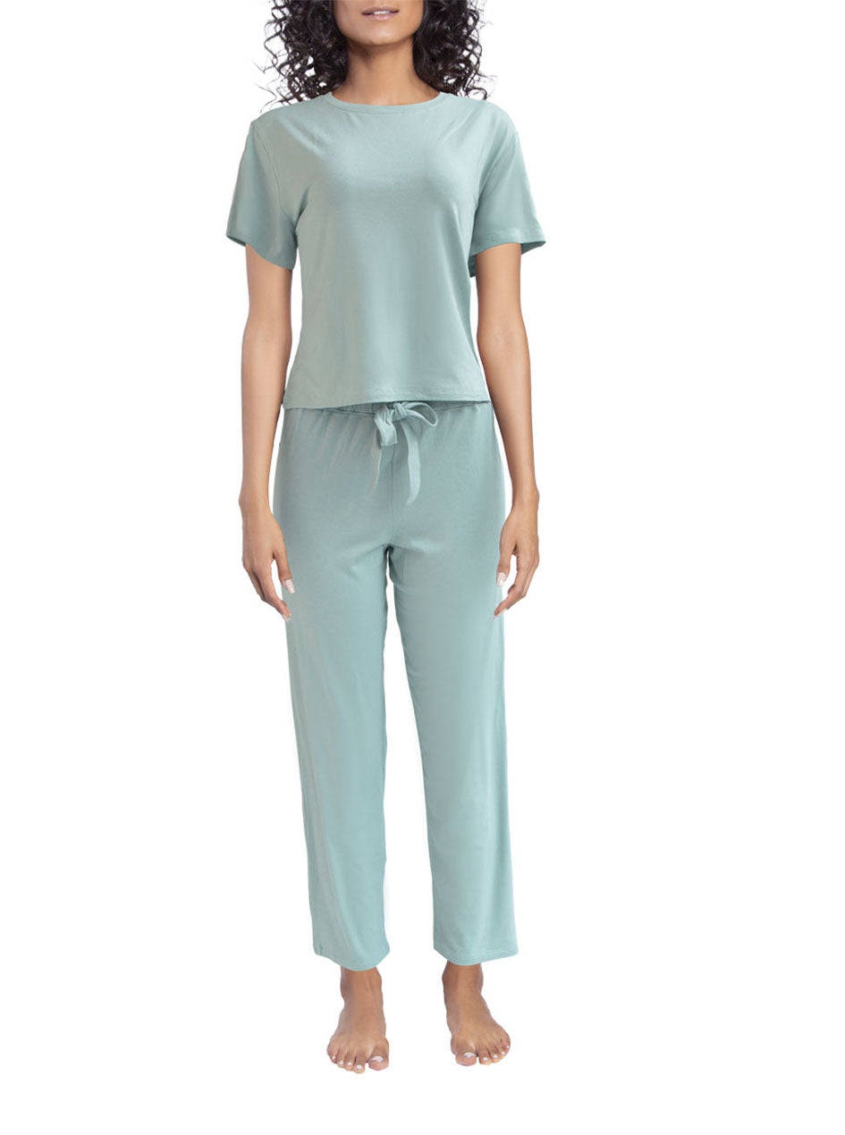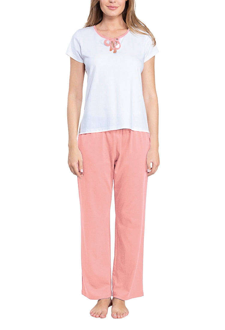 Short sleeve t-shirt and long pants pajama set. Wide and comfortable file. Soft elastic at...