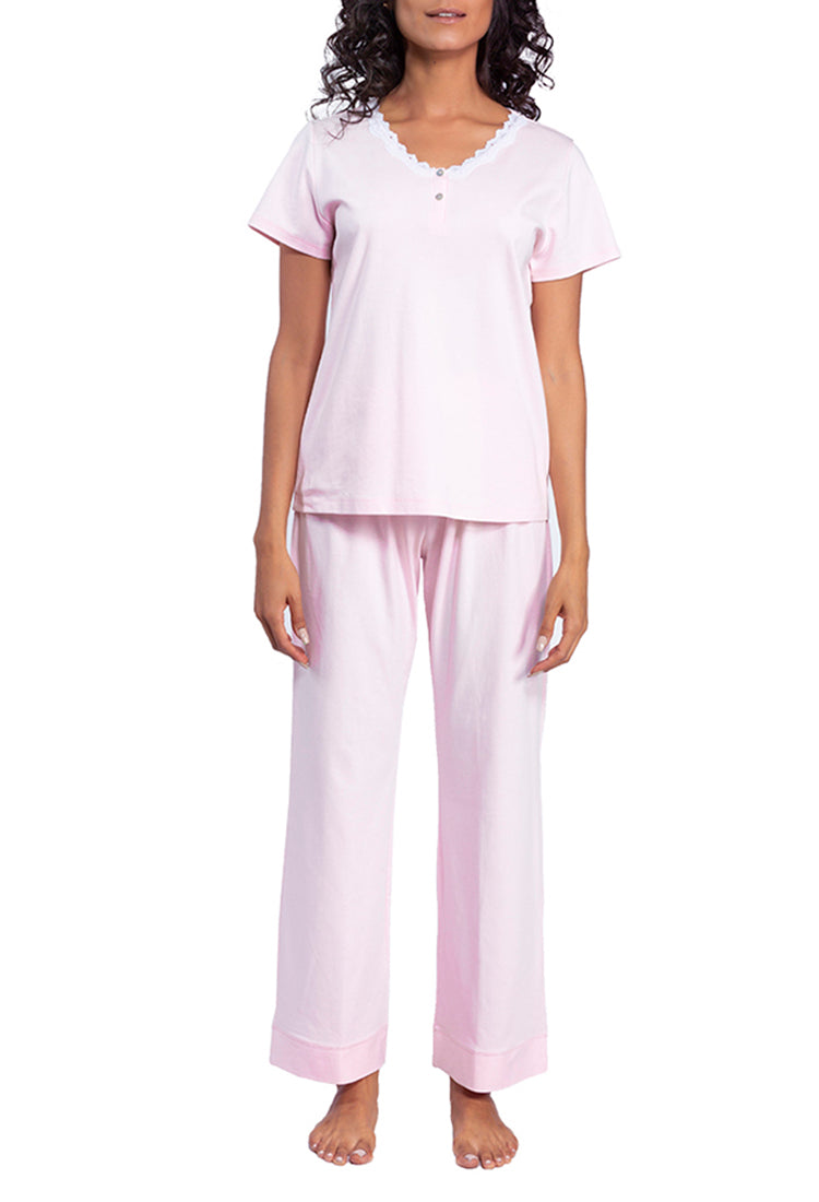 Pajama set, short-sleeved t-shirt, V-neck and capri-style pants Made with fine Peruvian combed cotton of...