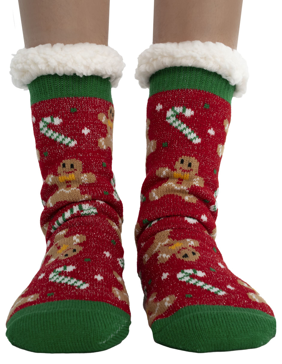 Pair of slipper socks with internal shearling-type fabric lining Exclusive design Thermal and very comfortable...
