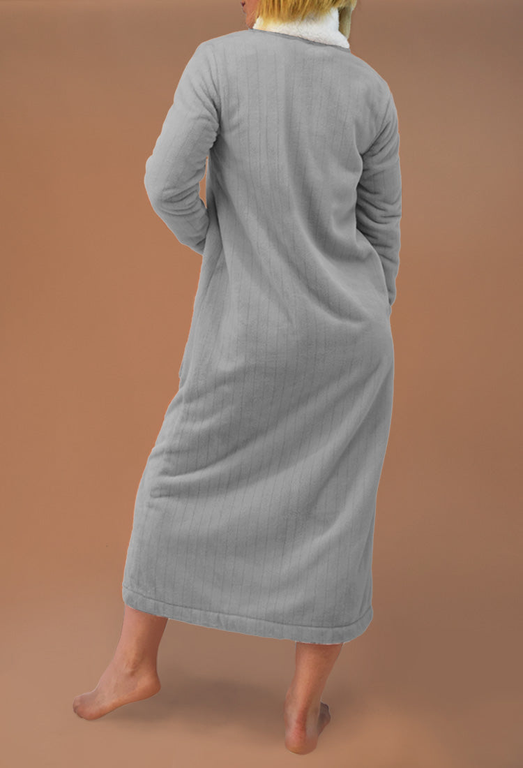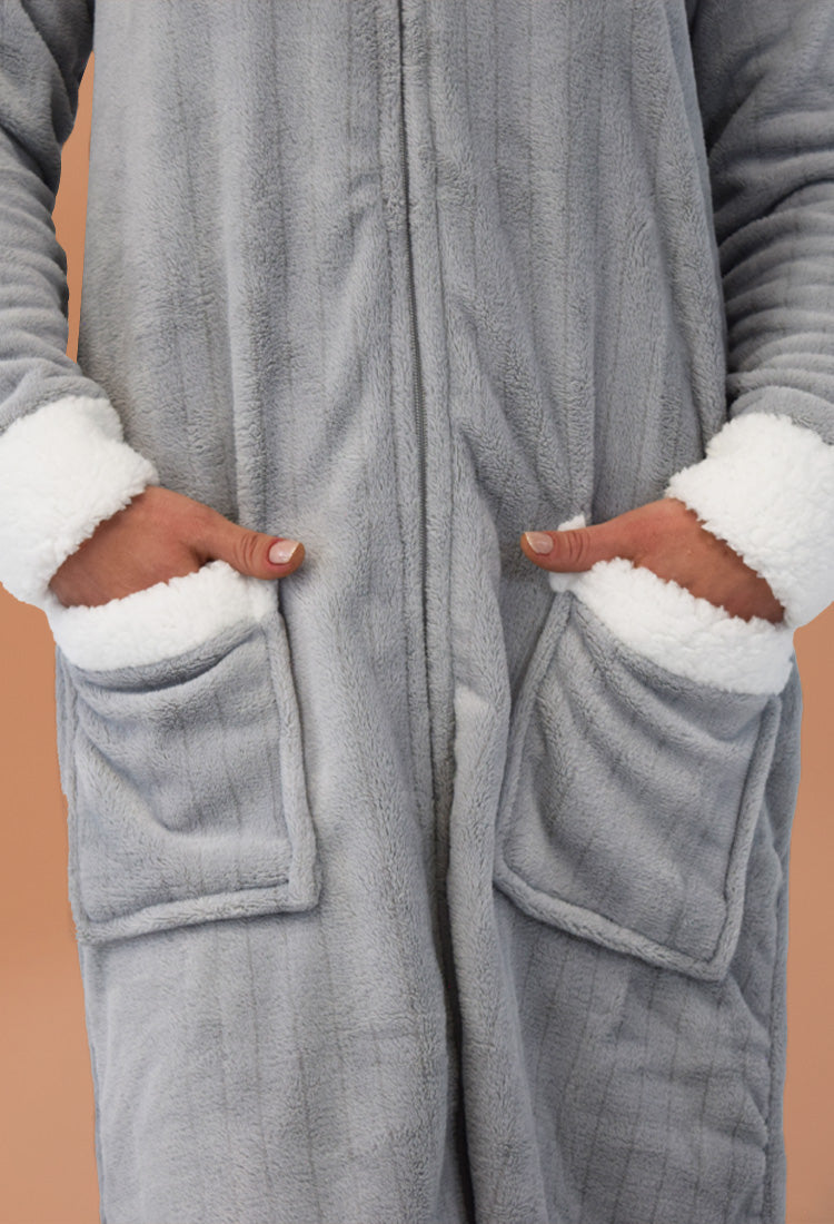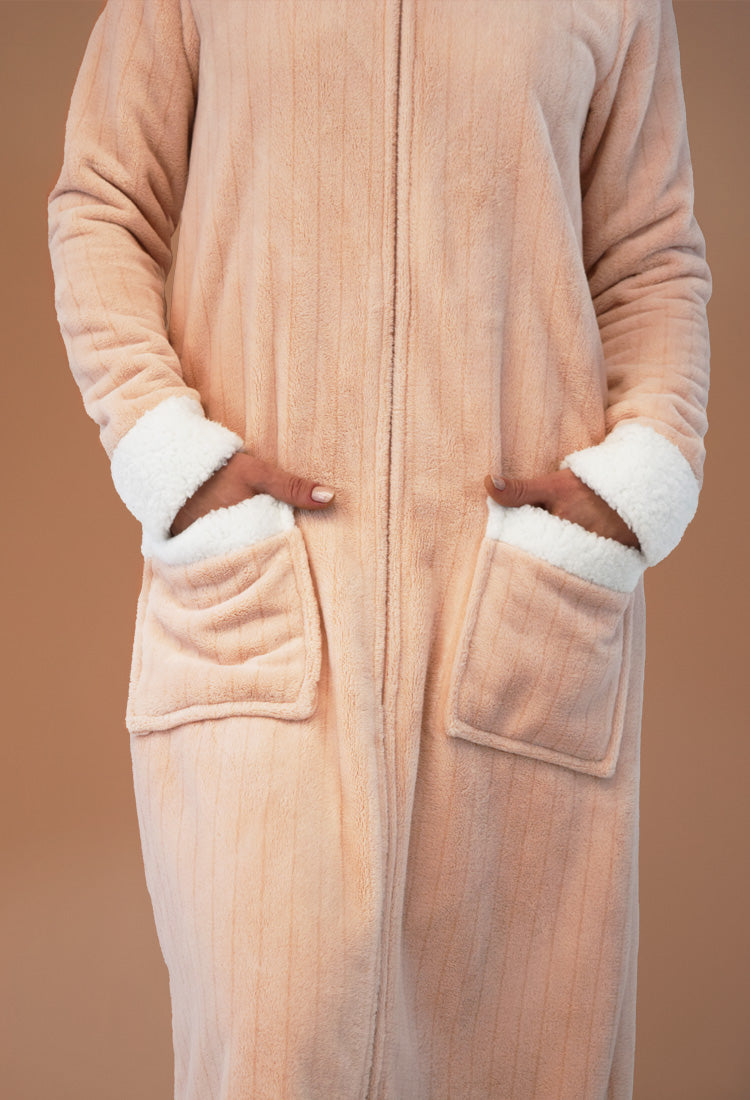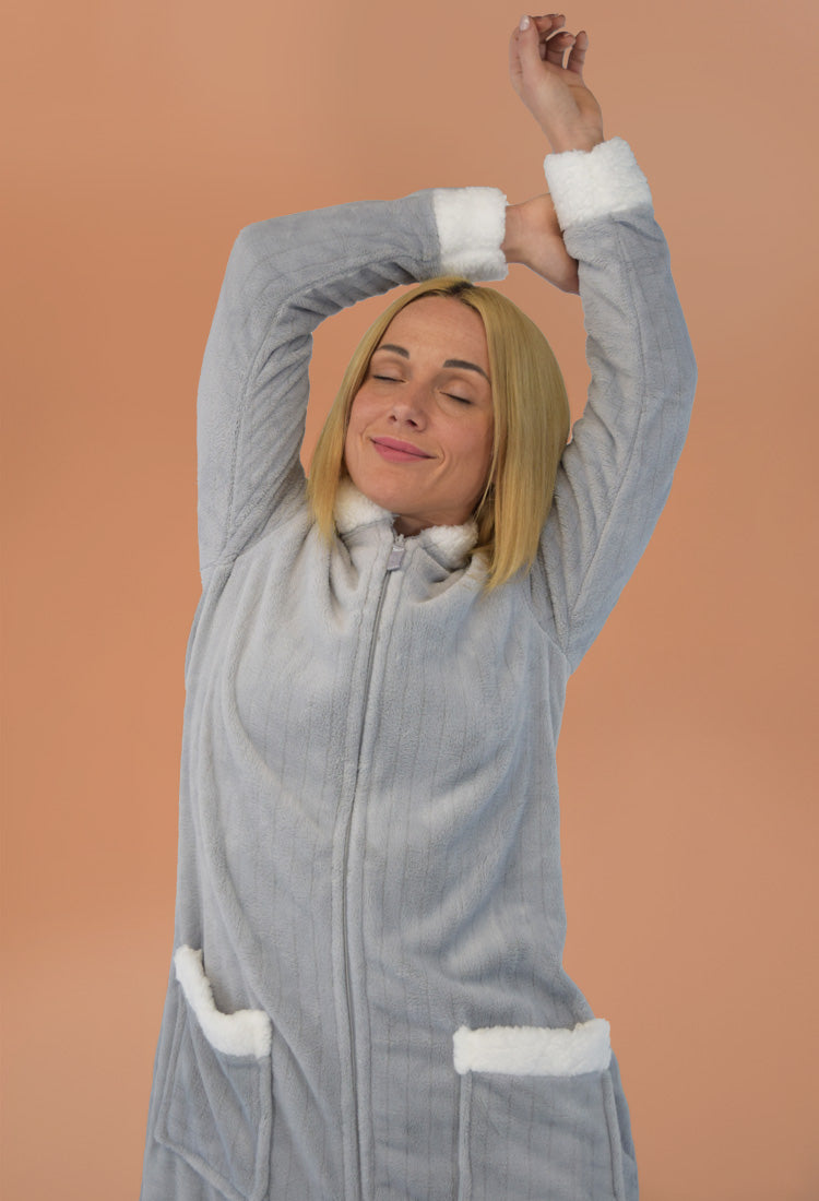 Its practical pockets allow you to keep your personal items close at hand while you move freely. Designed to prevent chills and protect you from the cold, this robe is perfect for any time of the day.
