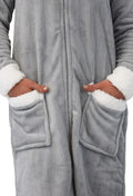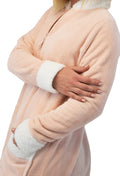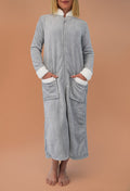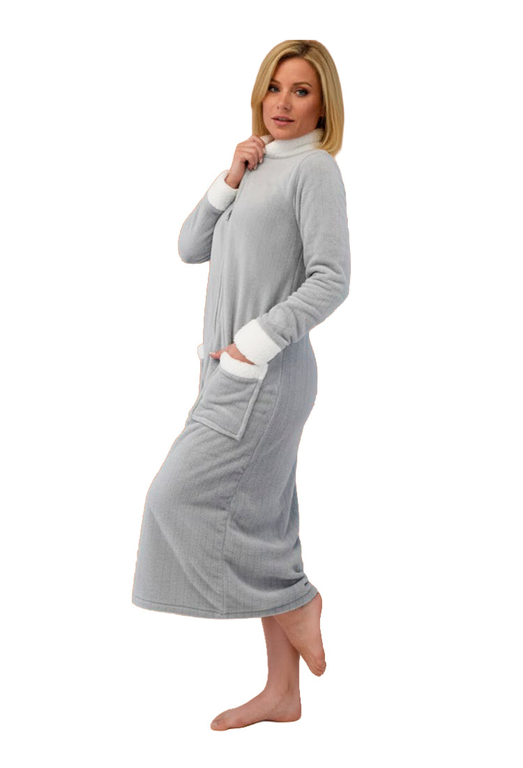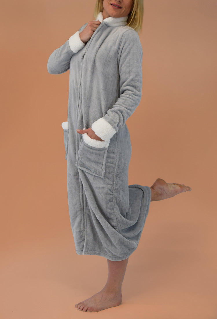 This robe has a zipper for an airtight closure that prevents cold air from passing through.