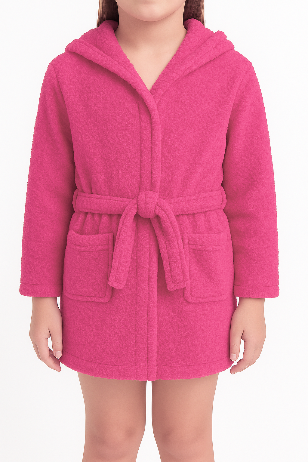 Colores rosa y fiusha, esta bata es perfecta para mantener a tu pequeña abrigada y cómoda durante esos días de juego o relax.