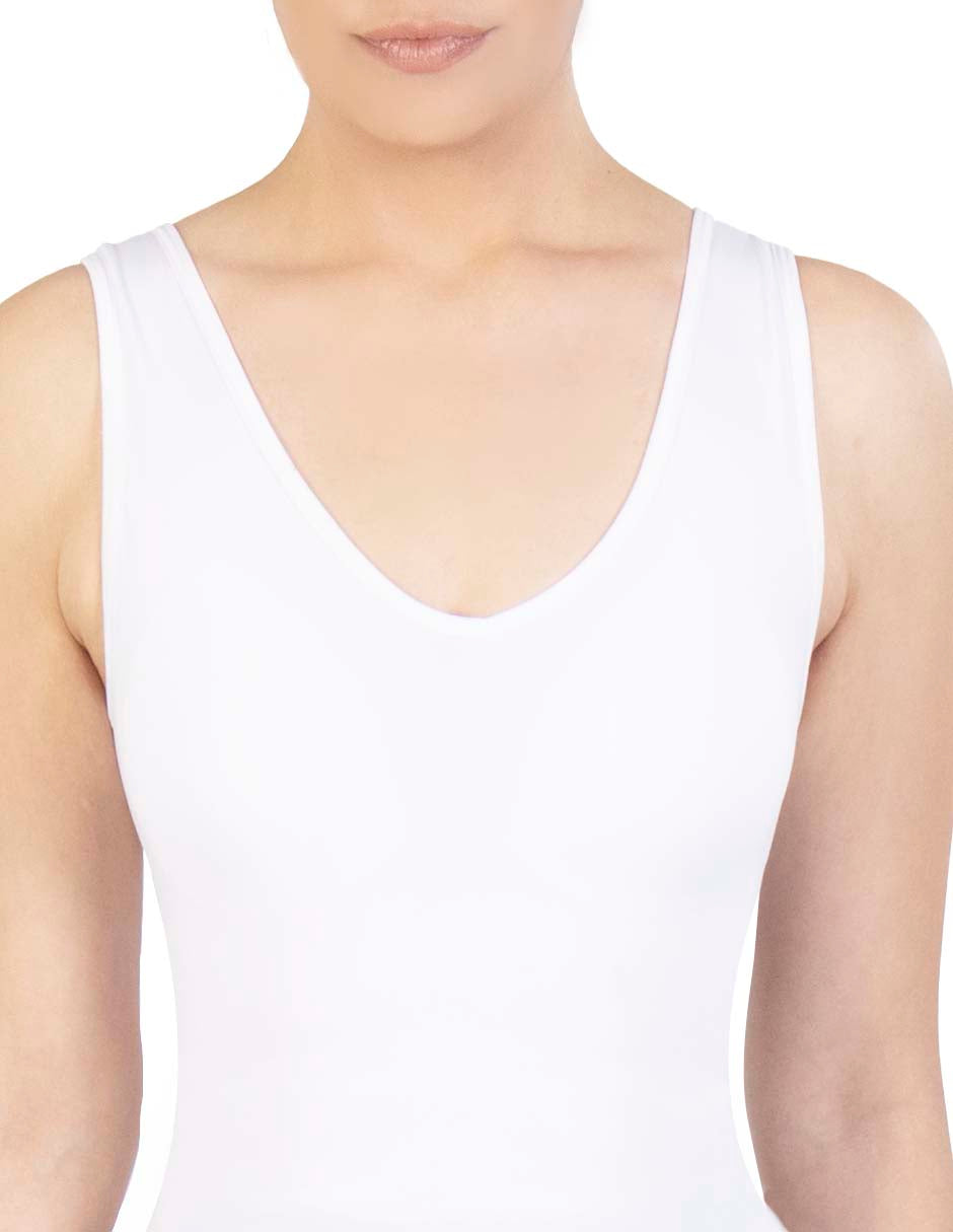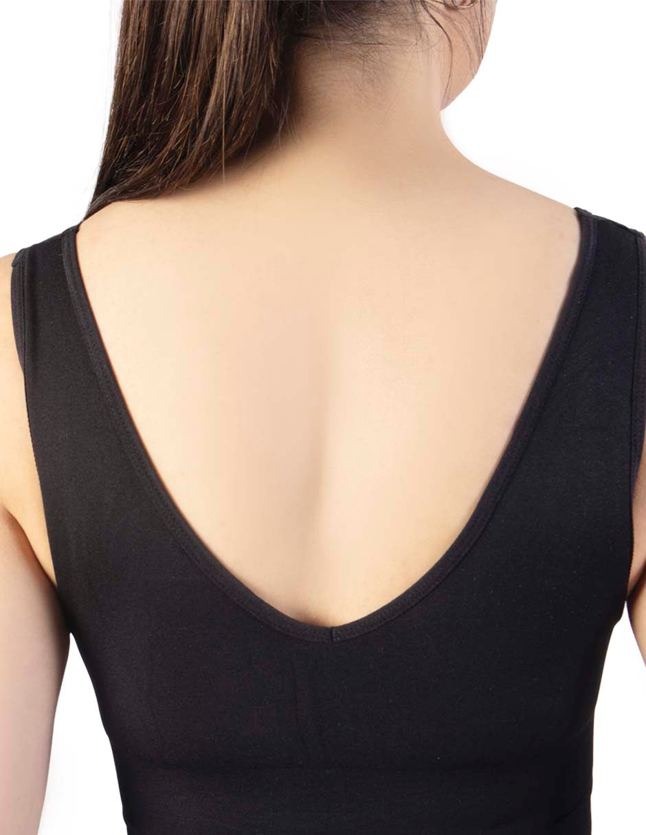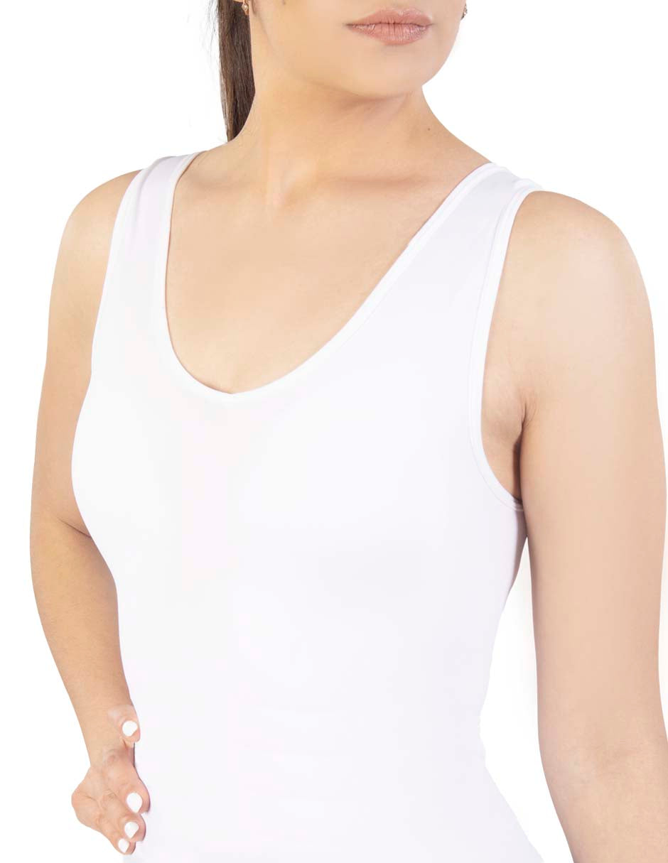 T-shirt for multiple uses. Reversible neck, you can wear it in a V-neck or round neck. Ultra-soft fabric with stretch that controls the abdomen and outlines the waist. Wide straps for better shoulder comfort.