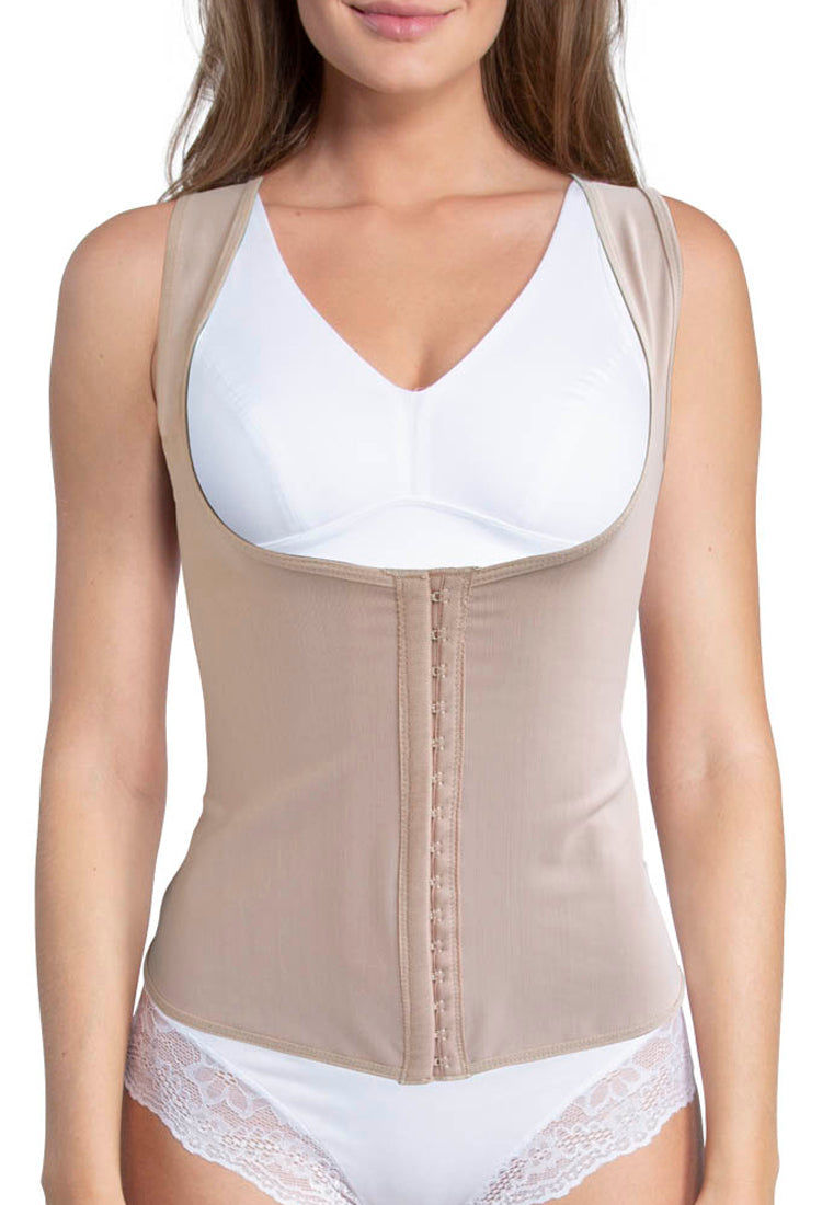 Chaleco formador diseñado para moldear talle, cintura y caderas.