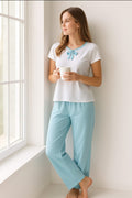 Short sleeve t-shirt and long pants pajama set.