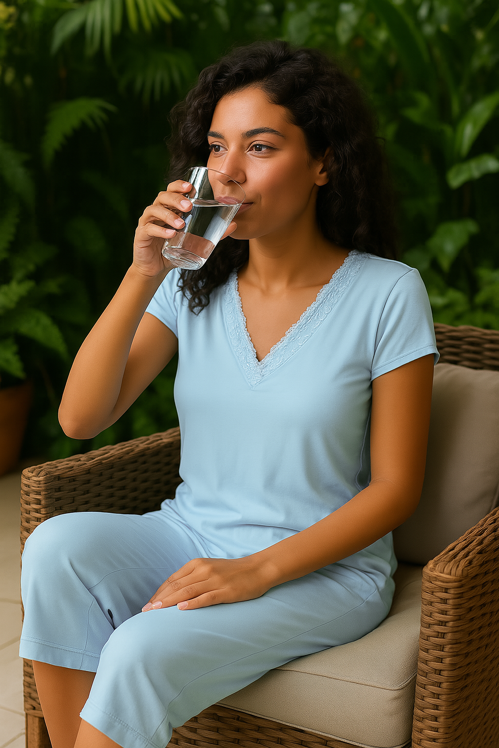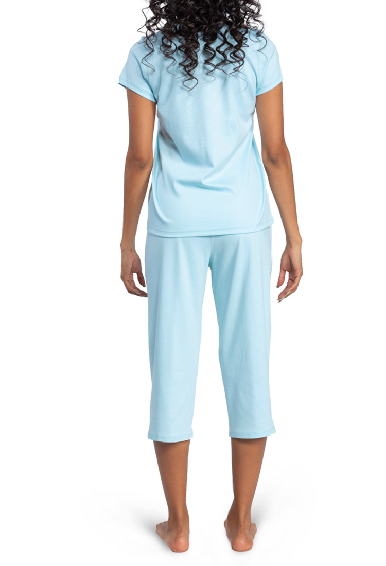 Pajama set, short-sleeved t-shirt, V-neck and capri-style pants