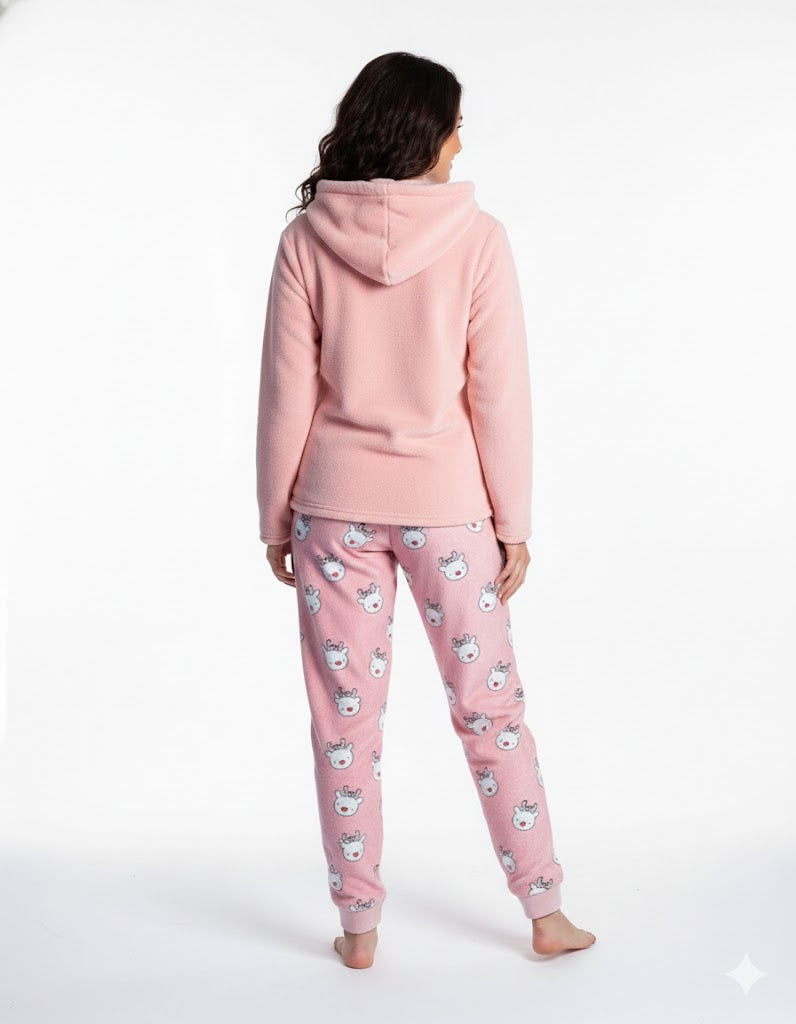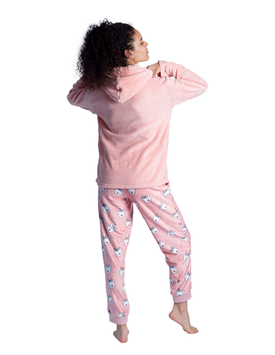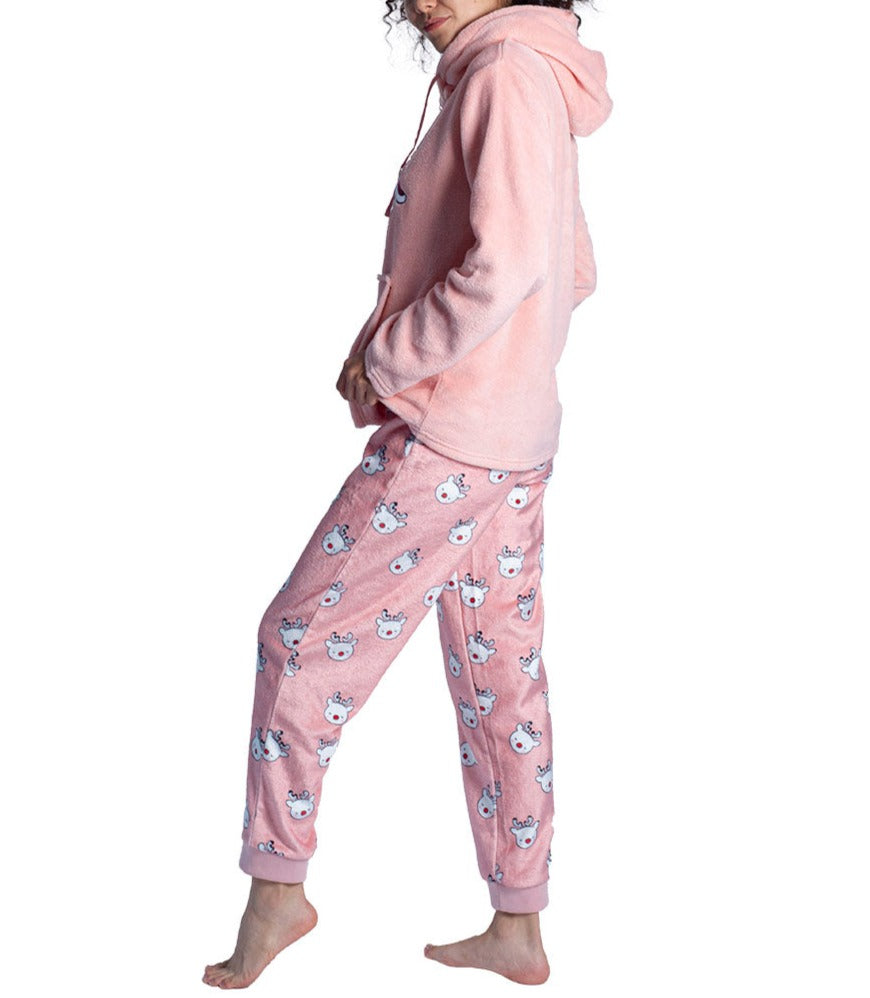 Pajama set, sweatshirt with embroidered application, hood and pants.