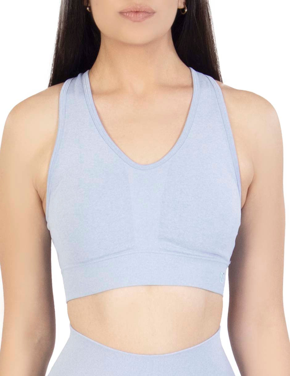 Sports top with cups, wide waistband for a better fit and crossed straps that provide control in the back, made without seams for better comfort, ultra-soft fabric with quick-drying technology, and elasticity that is not lost when washed.