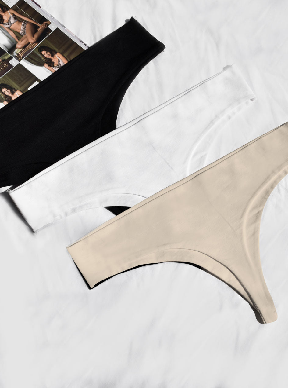 Thong panty with fine elastic lace application on the sides. Super soft and breathable Peruvian PIMA cotton, ideal for comfort and inner health. Jersey fabric with self-adjusting elastane to offer maximum comfort.