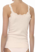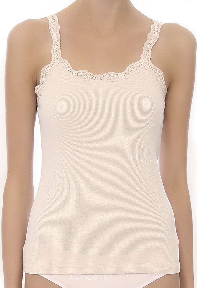 Camiseta de fino algodón peruano, con tirantes y cuello de encaje. Tela fresca y cómoda que permite múltiples combinaciones de diferentes atuendos. 100% algodón.